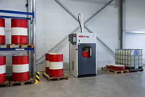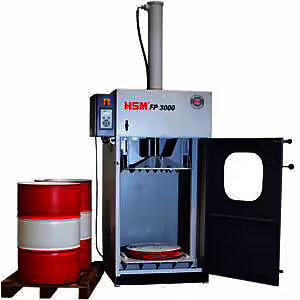 Cu o forță de presare de 270 kN, presa HSM FP 3000 este potrivită pentru compactarea butoaielor din metal ușor.